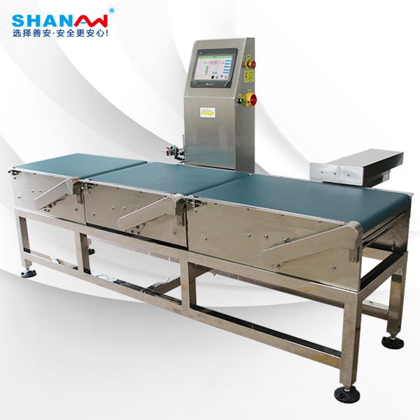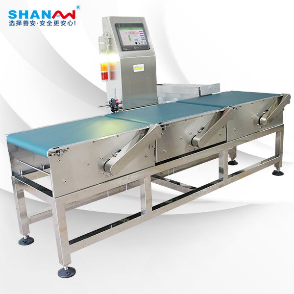 廣東善安自動在線檢重秤稱重機主要分為三個部分,即匹配段,稱量速度匹配的段落,除掉段,經測試產品輸送到dh系列在線檢重秤頂級款-速度匹配的段落,排序,散開的產品和產品的區間,個別產品進入第二段-稱重。