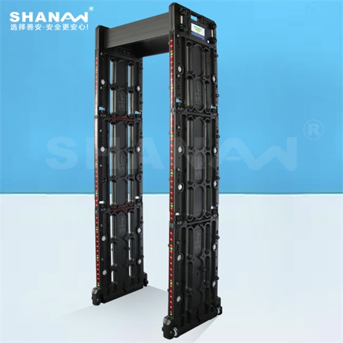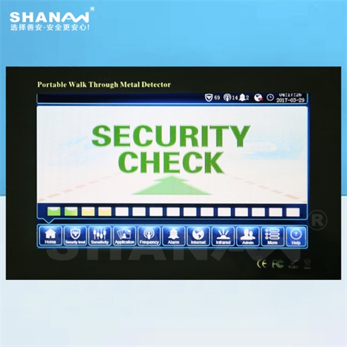 該產品獲得多項外觀機構專利,并已獲得軟件系統注冊版權。該款產品系利用電磁場檢測隨身金屬物的探測結構,以聲光報警的方式來表示通過者隨身金屬物超過一定量。它由主機、高頻信號發生器、信號接收器和紅外線傳感器等組成。具有外形大氣美觀、金屬探測能力較強、探測防區多、獨特的互聯網遠程操作管理系統、輕便、防水的特點,可以拆裝為8塊組成部件,可以方便的攜帶和轉運,是目前領先在市場前沿的便攜式安檢門。